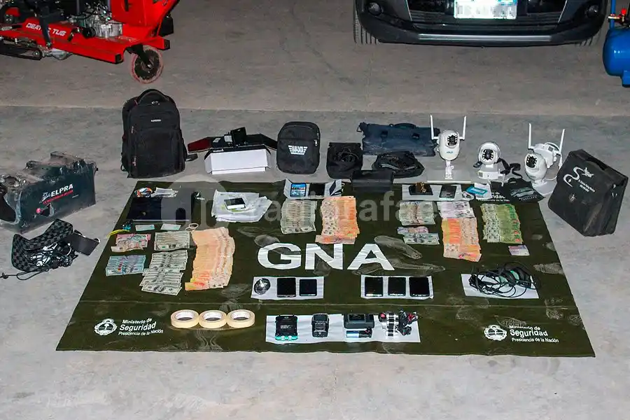 Asimismo, la investigación llevada a cabo permitió corroborar el vínculo con los dueños de un country (testaferros) ubicado en la localidad de Oliveros, sitio que cuenta con un aeródromo privado. Tras inspeccionar el hangar y demás domicilios, los funcionarios decomisaron tres aeronaves, un remolcador, vehículos, armas de fuego, dinero en efectivo, dispositivos tecnológicos y documentación relevante para la causa.