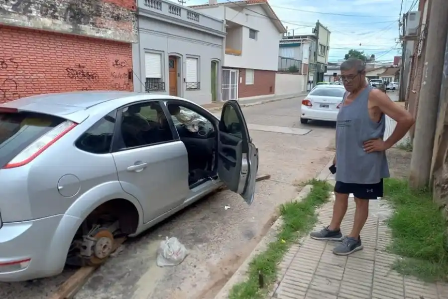 La víctima fue José, un jubilado de barrio Barranquitas. Dejó un Ford Focus estacionado en pasaje Leiva 3600. Delincuentes le robaron dos ruedas, también la de auxilio, y parte del equipamiento interior.
