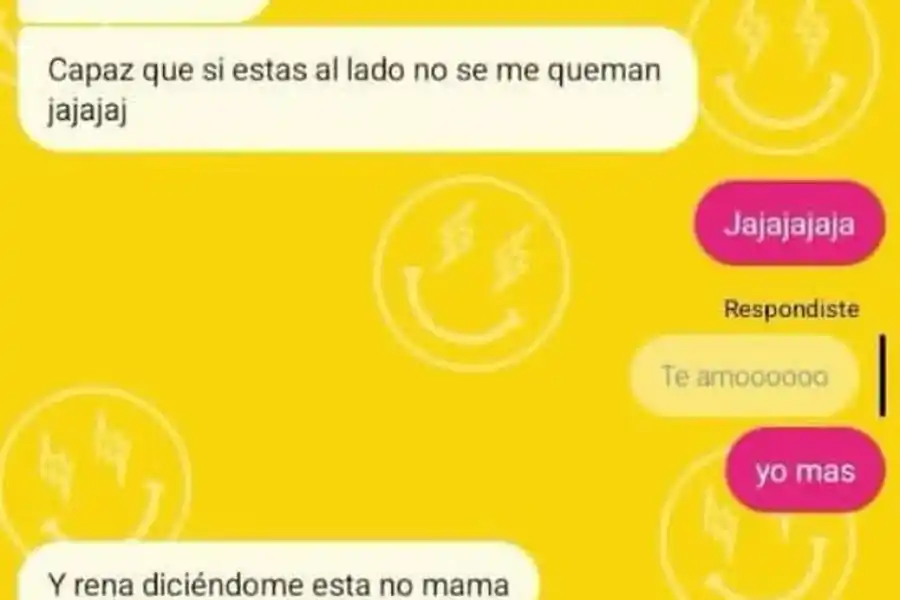 Luego, haciendo alusión a lo que estaba cocinando, le contestó: “Te amo. Capaz que si estás al lado mío no se me queman”. Fue allí cuando citó a su hijo, también menor de edad: “Y R. diciéndome que está podrida en vez de quemada”. Su alumno, haciendo referencia al hijo de su maestra, respondió: “Lo amamos”.