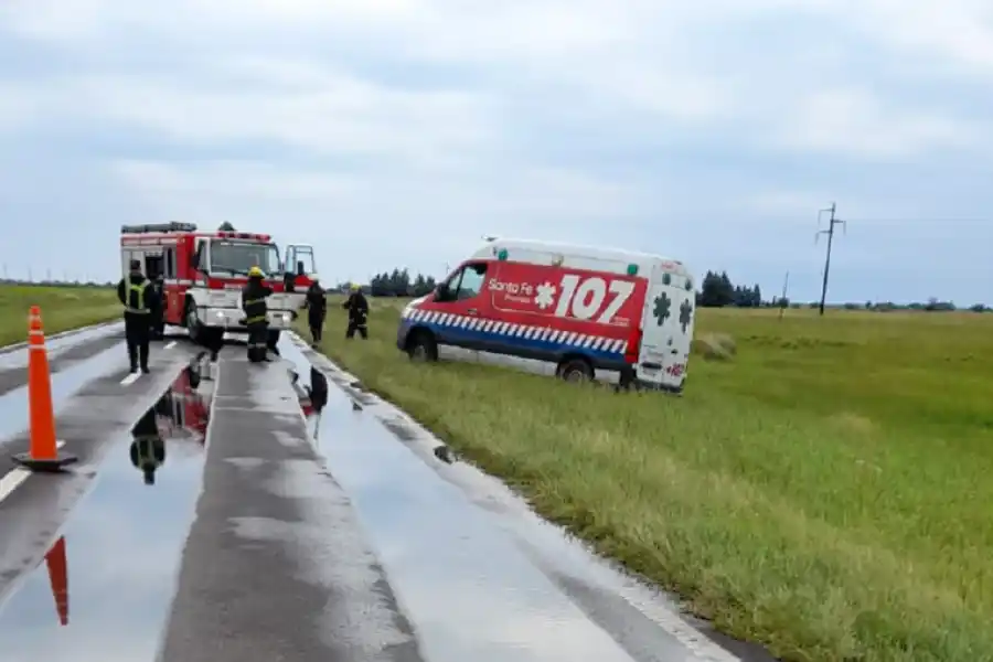 El ambulanciero dijo que perdió el control del móvil sanitario y se precipitó fuera del sector de circulación. Bomberos Voluntarios de Villa Ocampo procedieron a retirar el vehículo de la banquina.