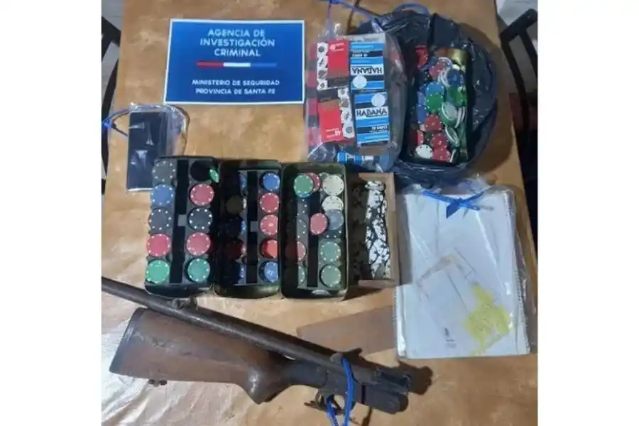 Como consecuencia de esos procedimientos casi simultáneos, las fuerzas de seguridad secuestraron cartas españolas, anotaciones varias de interés para la causa, fichas de apuestas de póker, 3 paños de mesa, una escopeta calibre 16 sin documentación, 1 notebook y cinco teléfonos celulares para peritar.