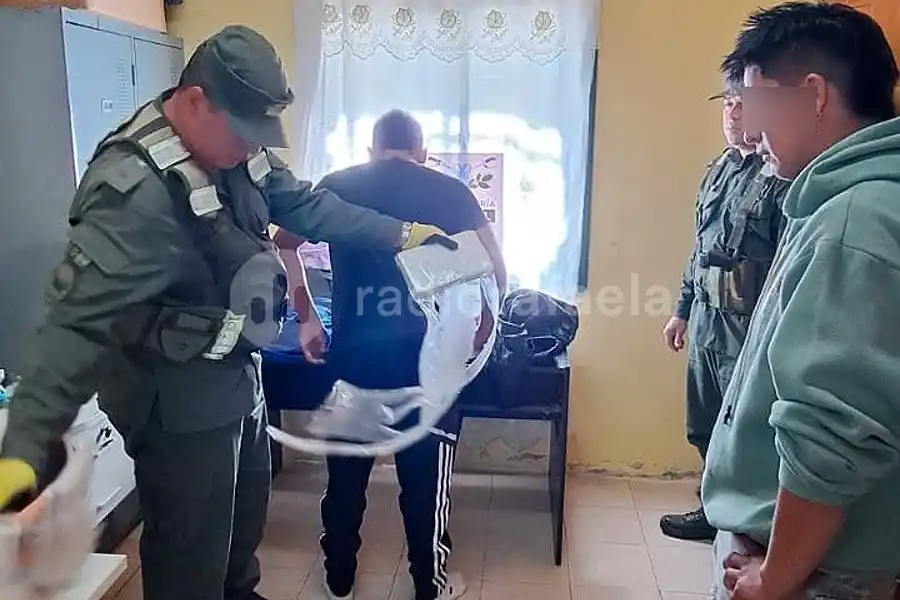 Al momento de la inspección de la parte superior del rodado, los funcionarios constataron que un ciudadano domiciliado en Alto Comedero (Jujuy) trasladaba de forma oculta en la espalda (debajo de la vestimenta) un paquete envuelto con cinta de embalar y un repasador, con una sustancia blancuzca.