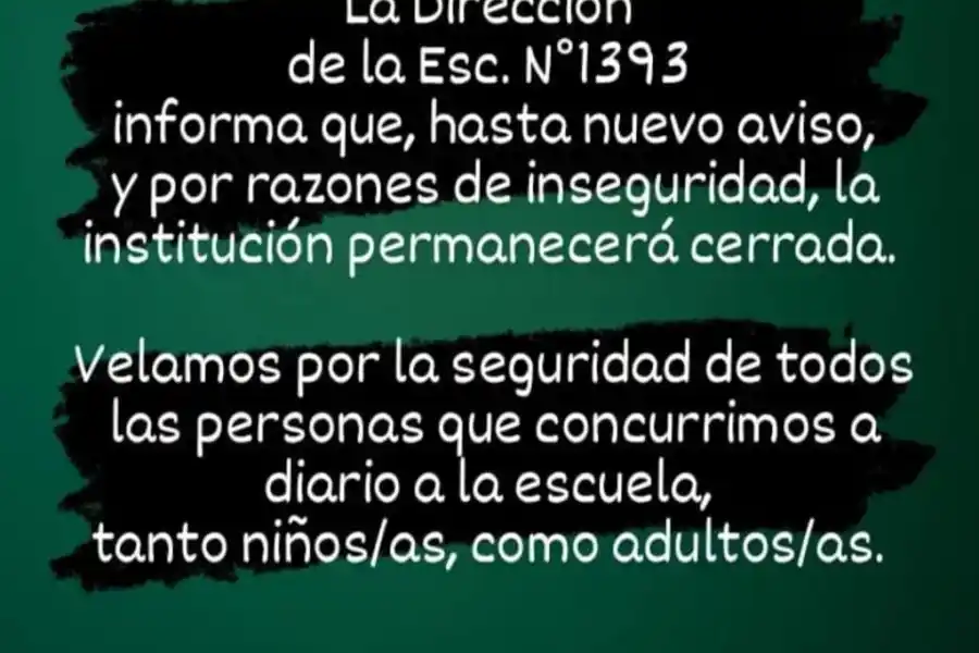 En la entrada de la escuela, cercada por rejas perimetrales, se colocó un cartel anunciando la suspensión de las clases por razones de inseguridad. La dirección del establecimiento también comunicó a través de las redes sociales el cierre temporal de la escuela, subrayando el compromiso con la seguridad de estudiantes y personal.