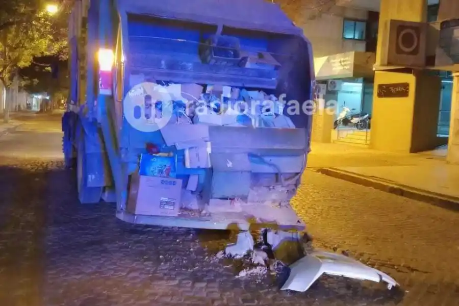 El suceso tuvo lugar sobre calle Pueyrredón, cercano a la intersección con calle San Martín, cuando un conductor a bordo de un Toyota Corolla chocó con la parte trasera de un camión recolector.