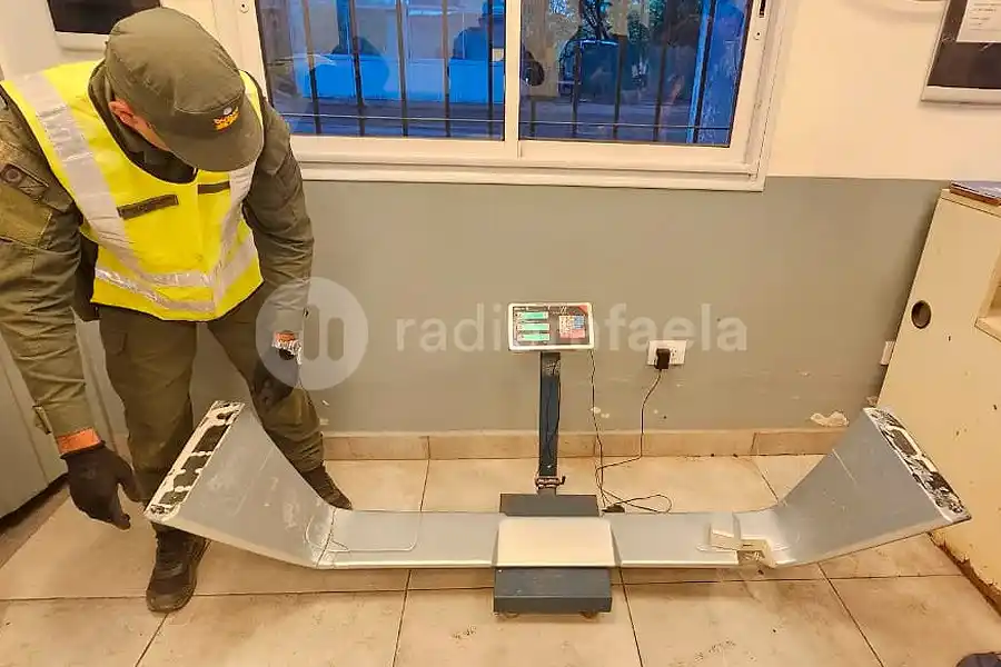 En presencia de testigos, los gendarmes utilizaron herramientas para retirar la barra alerón del rodado en la cual notaron que poseía silicona y topines negros siendo estos signos de haber sido modificados recientemente.