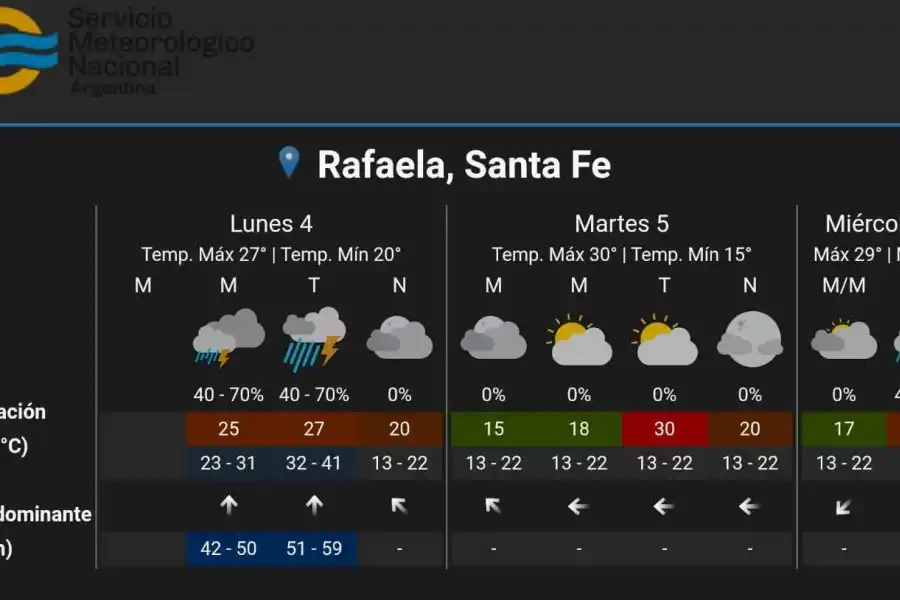 “Se estiman valores de precipitación acumulada entre 20 y 50 mm, pudiendo ser superados en forma local”, afirma el SMN.