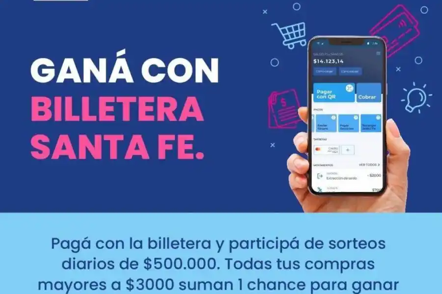 Para poder acceder al gran premio de $500 mil diarios se deben realizar compras mayores a $3.000 con la Billetera Santa Fe y por cada compra se suma 1 chance para ganar, con lo cual si un usuario realiza en el día más de un pago mayor a ese valor, tendrá mayores posibilidades de resultar sorteado.