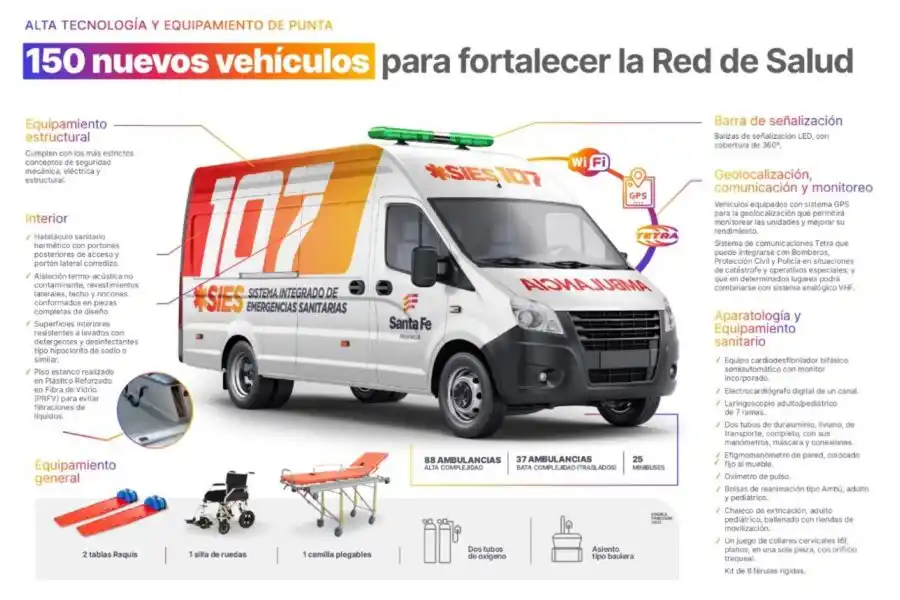 El pliego contempla la compra de 88 ambulancias de alta complejidad, 37 de baja complejidad, para traslado de pacientes; y 25 minibús, que serán destinados a la Secretaría de Logística Integrada y Articulación de Redes (SeLIAR) del ministerio. Dentro de las unidades que tendrán mayor equipamiento y complejidad, ocho serán 4x4, para garantizar el acceso en caminos del Norte provincial. La apertura de sobres se realizará el 21 de agosto a las 10, en Casa de Gobierno.