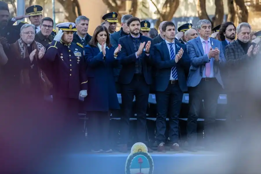 La celebración contó con un desfile cívico militar, la participación de la banda de Policía de la provincia, banderas de ceremonia, abanderados de distintas escuelas e instituciones de la ciudad de Rafaela y veteranos de Malvinas.