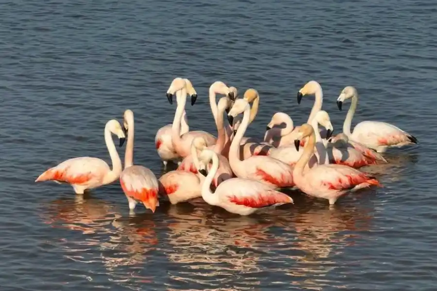 A lo lejos se pueden apreciar, en la margen Este de la laguna una bandada de flamencos. Visitantes exclusivos del espejo de agua santafesino que llegaron hace varias semanas.