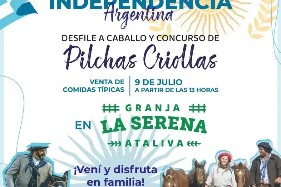 Este martes 9, la Granja La Serena abrirá sus puertas a partir de las 13 horas para celebrar el Día de la Independencia Argentina con un desfile a caballo y un concurso de pilchas criollas. El evento contará con la participación de agrupaciones gauchas y un ballet folclórico local.