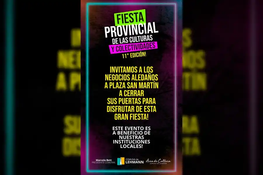 Este sábado 16 de noviembre a partir de las 19:00 hs la Plaza San Martín de Lehmann será la anfitriona de la 11° Edición de la Fiesta Provincial de las Culturas y Colectividades. Y para conocer más detalles al respecto, Marcelo Bett, presidente comunal de la vecina localidad, pasó por los estudios de Radio Rafaela y dejó todos los detalles.