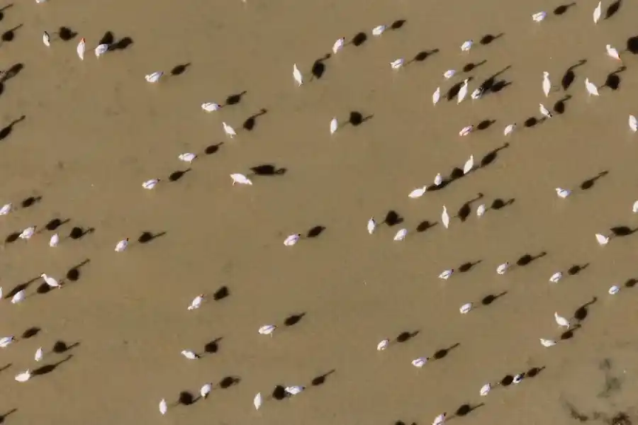 Los picos remueven lentamente la greda, recolectan y dibujan esos círculos. Las aves llevan a cabo su labor con descuido. Al haber poca agua en la laguna no llegan las lanchas, no llega el humano. “Nada los perturba, pueden habitar el lugar sin riesgos”, dice Barison.