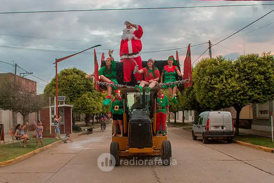 La Comuna de ese pueblo de siglo y medio de vida preparó una sorpresa para los chicos: en una retroexcavadora la pala fue adaptada como si fuera un trineo y sin necesidad de renos, el Santa viajó con sus duendes –todos integrantes de la comisión comunal-, repartió sonrisas, regalos y más de 150 helados a los pibes que luego fueron hasta el árbol montado en la plaza del pueblo para las fotos del recuerdo.