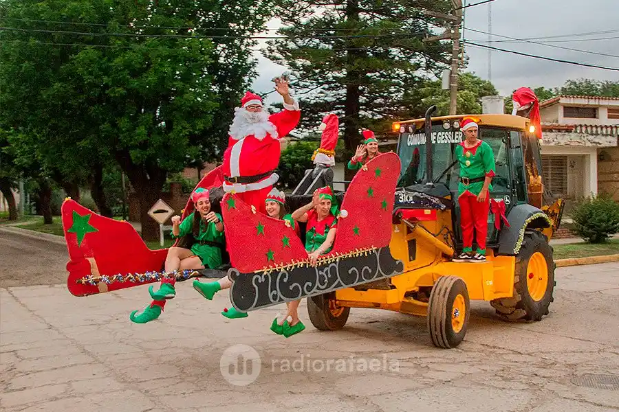 Papá Noel salió a recorrer Gessler en una retroexcavadora: “Es en beneficio de la comunidad y nos llena de alegría”