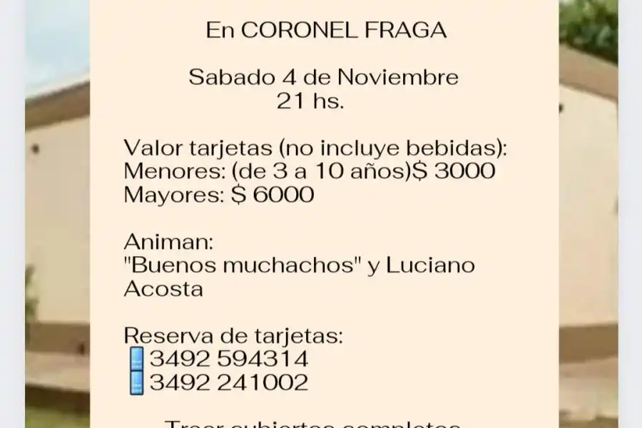La música también será una parte integral de la fiesta, con la participación de la orquesta "Buenos Muchachos" de Porteña, que ha acumulado seguidores fieles a lo largo de los años. "Mucha gente los sigue y compra entradas para venir a verlos", destaca Marisabel. Además, Luciano Acosta, un talentoso artista de San Francisco, ofrecerá un tributo a dos leyendas de la música, Gary y Sandro. Marisabel tuvo la oportunidad de verlo actuar en Fraga en el pasado y lo describe como "buenísimo".