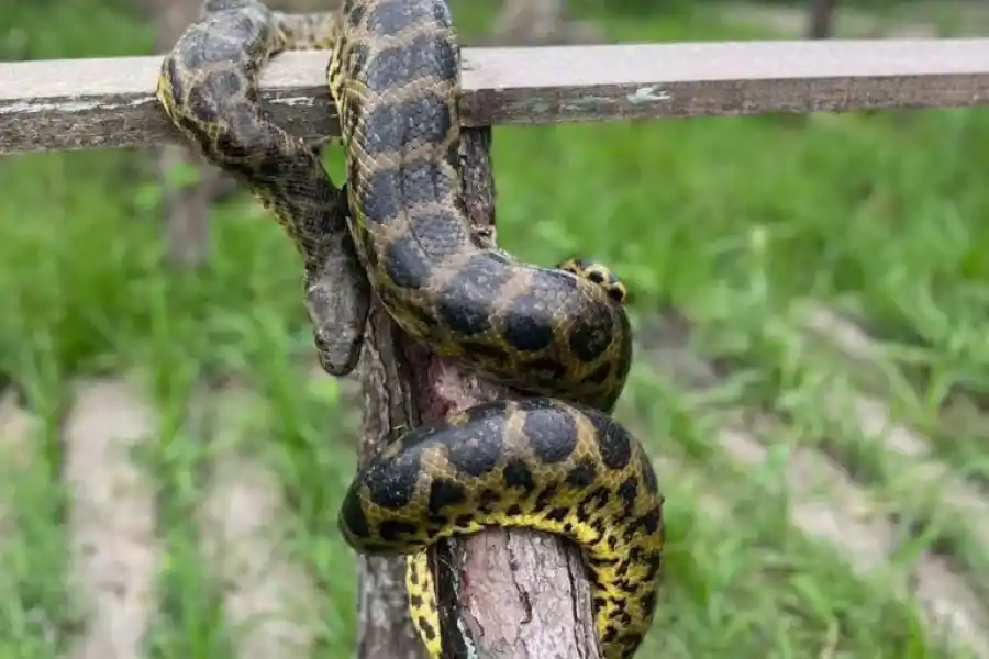 Durante la media mañana del miércoles 27 de noviembre de 2024, personal de Fauna municipal de Reconquista recibió un llamado del 911 donde informaban que en el patio de un domicilio sobre calle 39, entre Formosa y Corrientes del Barrio Lanceros del Sauce, se encontraba una serpiente de gran porte.