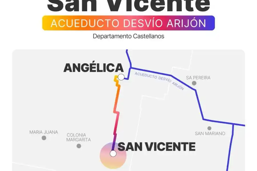 A comienzos de mayo, el ministro de Obras Públicas, Lisandro Enrico, anunció que se construirá el ramal San Vicente desde la Estación de Bombeo Nº5/ Angélica, lo que permitirá que la localidad de San Vicente, en el departamento Castellanos, cuente con agua potable del acueducto Desvío Arijón.