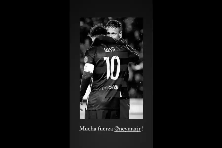 El astro argentino, que viene de marcar los dos goles que le permitieron a la Argentina vencer como visitante a Perú por las Eliminatorias Sudamericanas, subió una imagen en la que se lo puede ver abrazando al brasileño y escribió: “Mucha fuerza”.