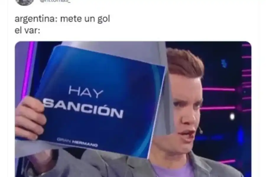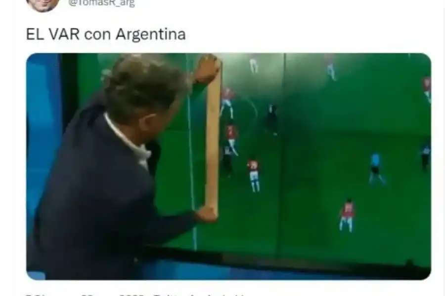 Como era de esperar, los memes apuntaron a la acción del VAR, que le anuló al menos tres goles en el cotejo, y es por eso, que hasta el momento la ventaja albiceleste es mínima.