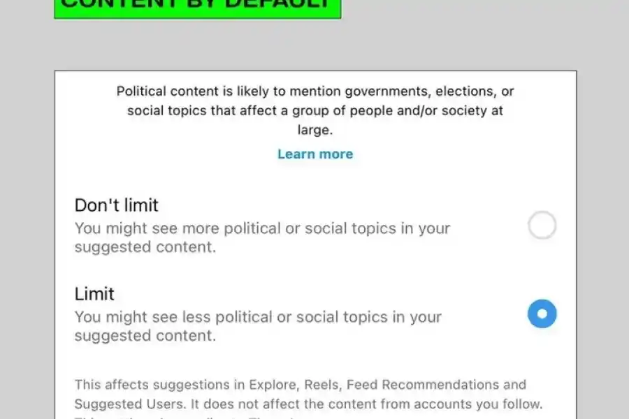 En forma predeterminada Instagram comenzó a restringir contenidos vinculados con la política, algo que se puede modificar o confirmar pero de entrada ya vienen predeterminada de esa manera.