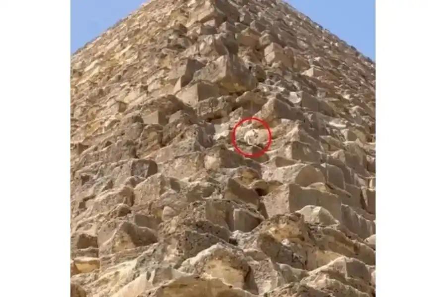 Los aventureros rápidamente tomaron sus teléfonos y los apuntaron a la cima de Khafre, la segunda pirámide más alta, que está fuera del alcance de los humanos, solo para encontrar a un perro aparentemente persiguiendo algunos pájaros en la cima de la estructura de 136 metros de altura.